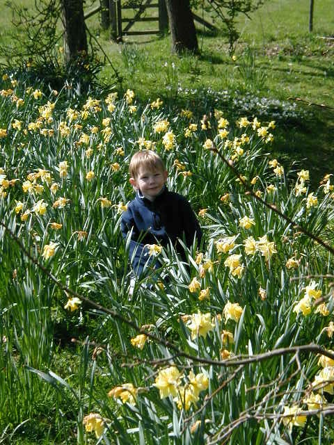 Here someone has planted a child in this field of Daffodil at Great Dixter, as the dillies fade the orchard grass will take over and the dying leaves of the Daffodil will be covered and the whole thing can be mowed by June.